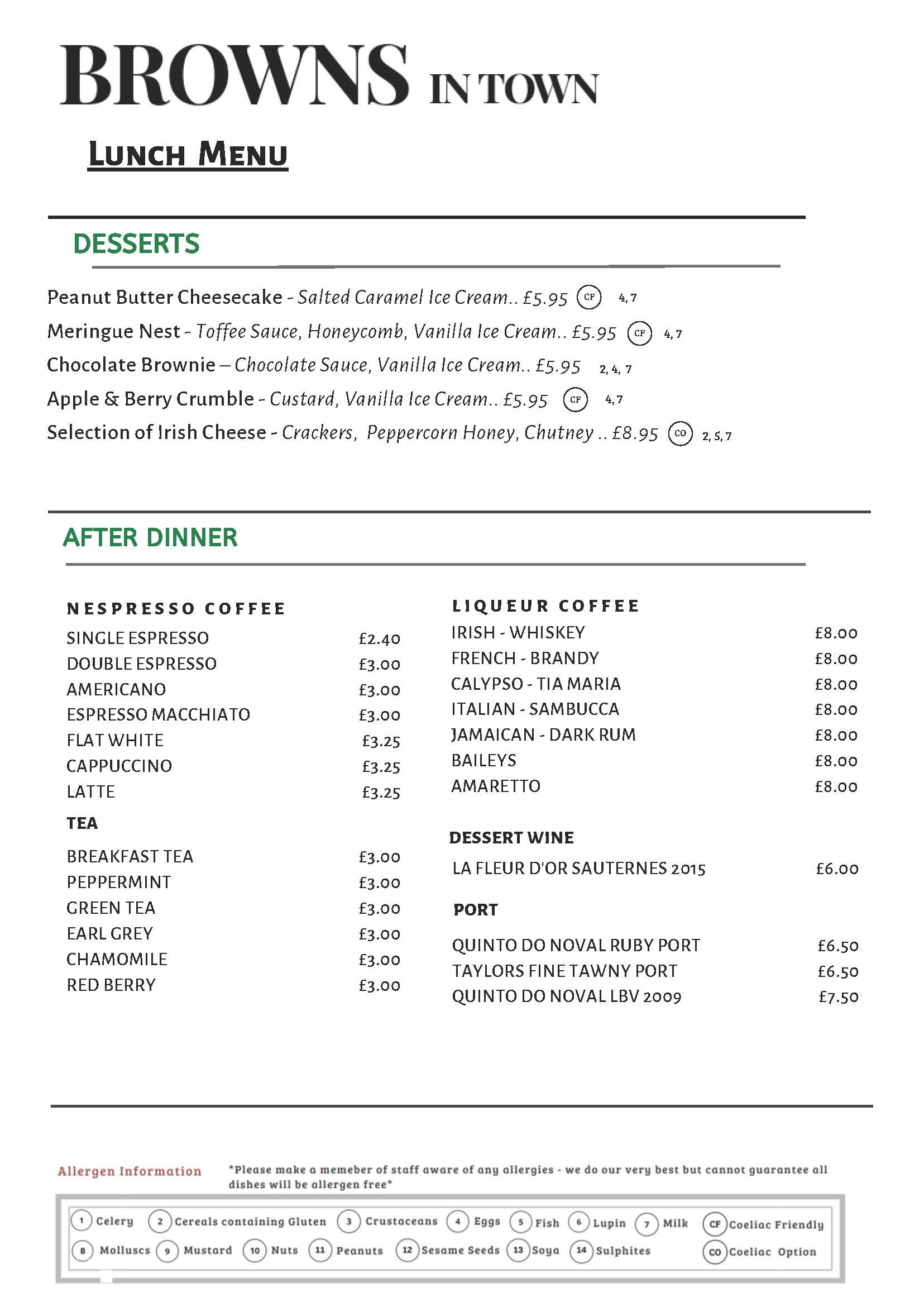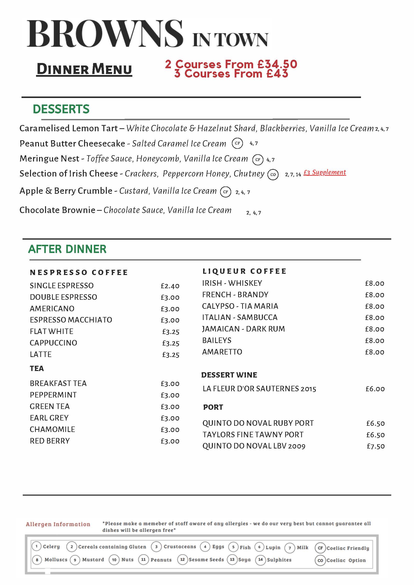 *This is a sample menu and is subject to change